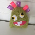 I have been experimenting with the design and style since this prototype and found the neutral squares make great teddies (or animals), where the more zany and colourful are perfect for monsters. They can also be accessorised with ribbons, and I have also fitted squeakers in my most recent model! Bells and rattles would be just as effective, but bells would need to be fitted inside a casing to allow them to ring properly.