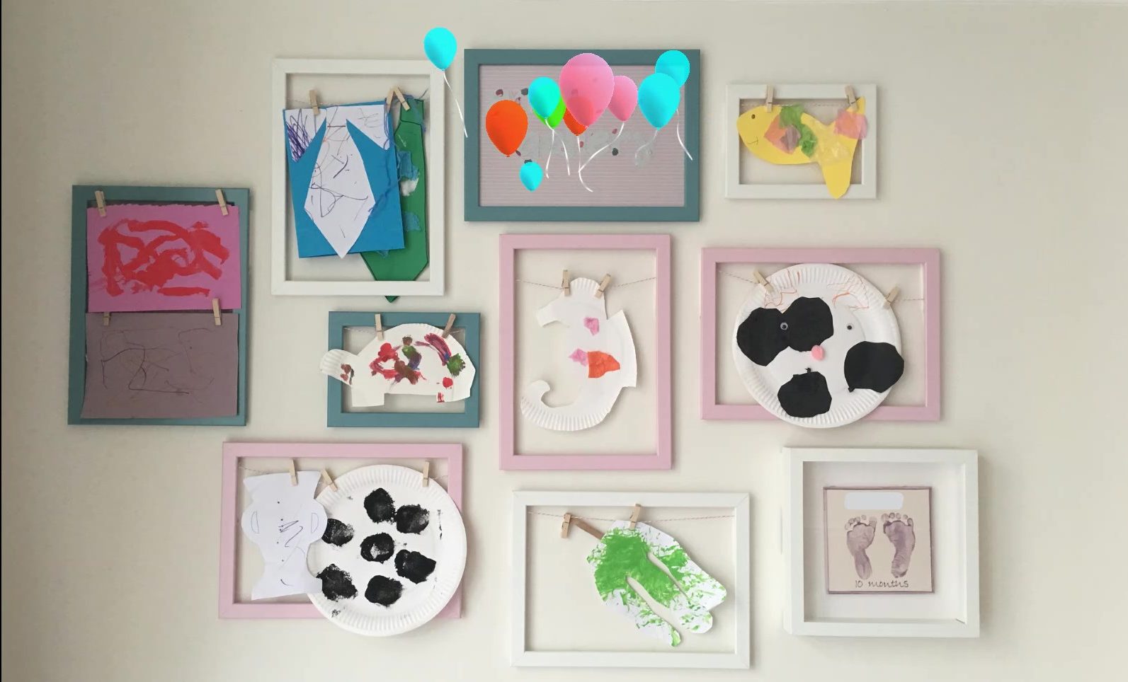 But we have an issue… we have a tiny fridge and it’s really low down, so the traditional home of the kid’s artwork is unavailable. So how to display this array of masterpieces? Well how else would you display it but in a gallery of course!