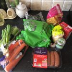 • 3 speciality sausages (I use Sainsbury’s TTD chorizo-style)