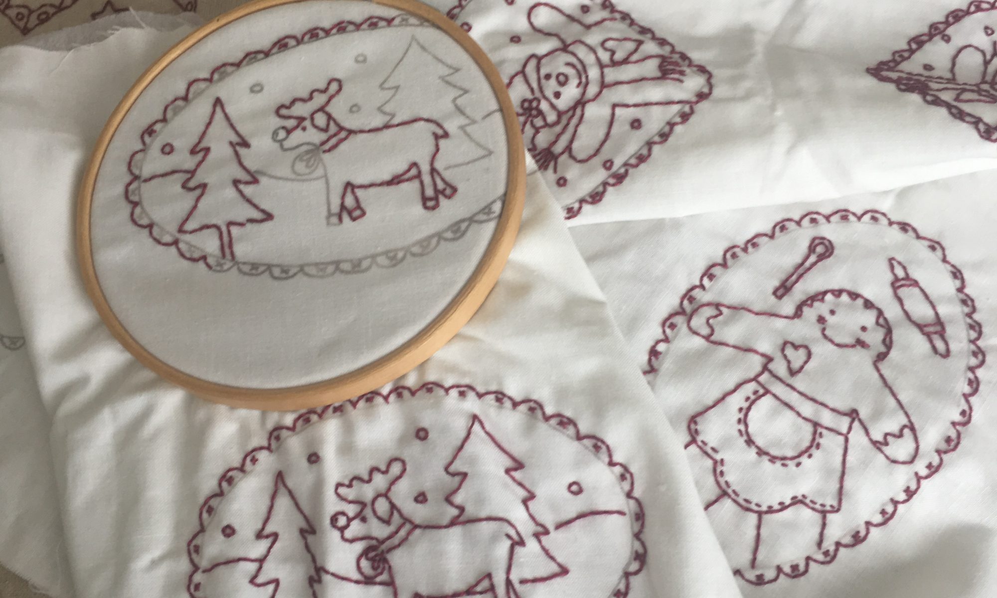 • Redwork hanging decorations