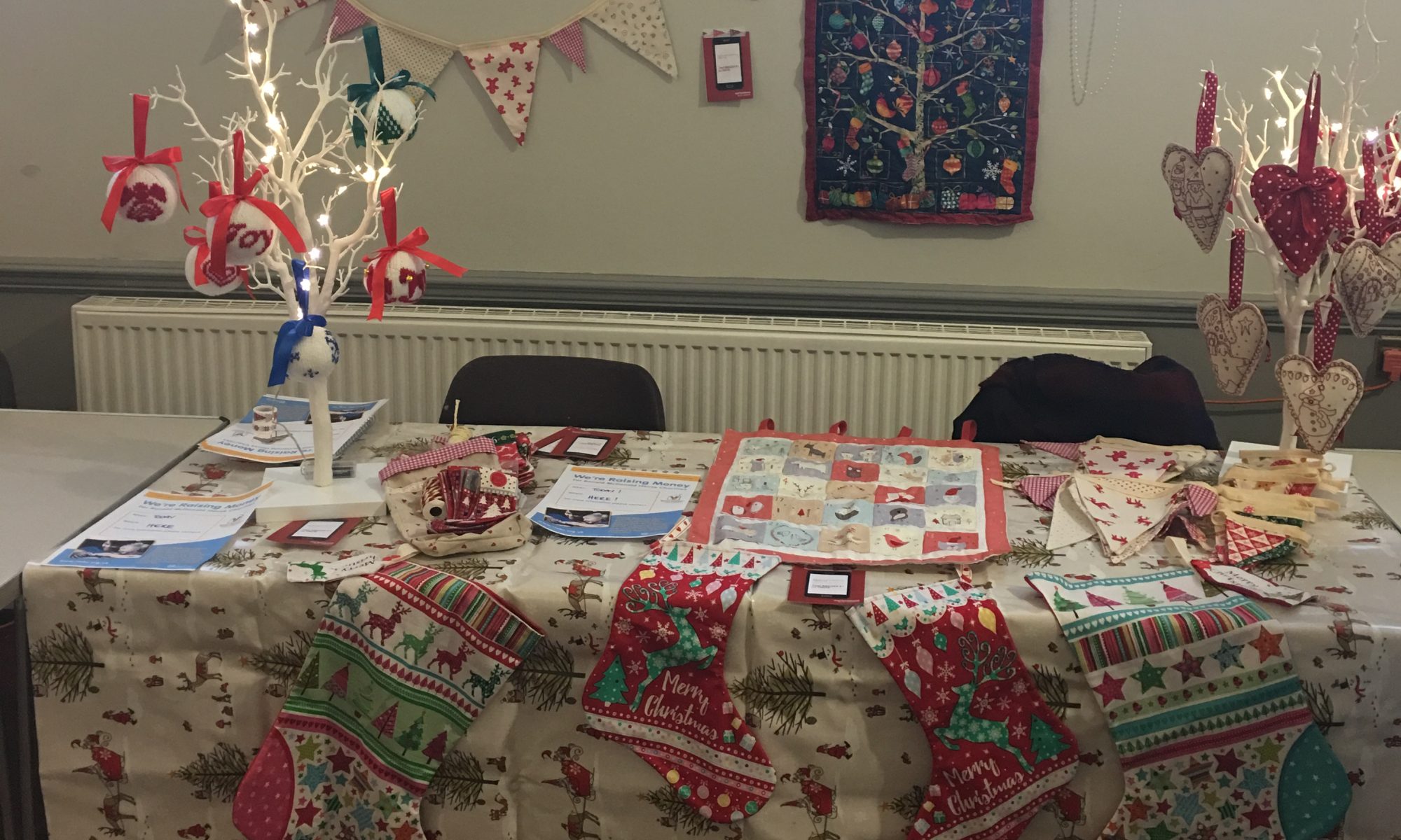 And then suddenly a rush! More friends arrived armed with cash for the purchase of items! Suddenly the stall was attracting interest as my friend started exclaiming loudly about the detail of the stitching on an advent calendar, “in gold thread?! How beautiful! And it is how much on Etsy? Really?  so this is truly a bargain!” My first sale bagged!! And yes to a friend, but I had already thought some of the higher priced items would be more likely to sell to the people I knew. I had my 2 advent calendars sold within half an hour, but we kept one on display with a sold sign, to promote the full range of makes and also to maybe demonstrate demand…